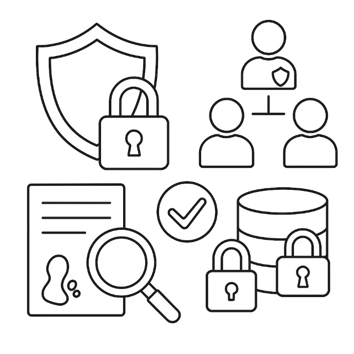 IP 白名單、權限分級、審計日誌、資料保護策略。